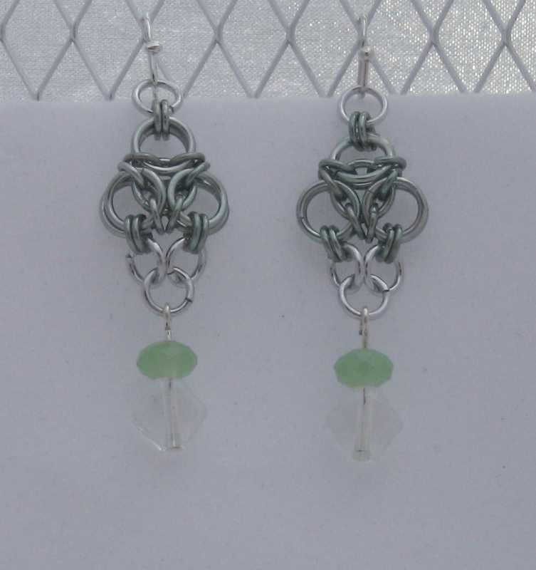 Handmade chain maille earrings e10132 Posted on October 21, 2014 by donnaw39 under Earrings Anodized aluminum rings with crystal beadscolors: seafoam green and bright silverweave: aurasize: 2 Like Loading... Related