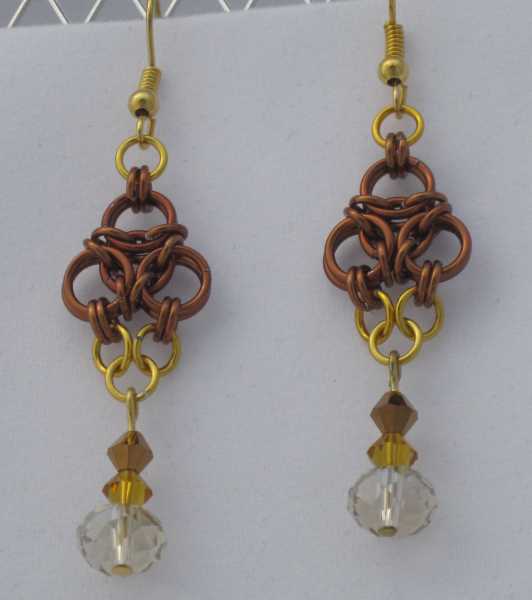Handmade chain maille earrings e10127 Posted on October 21, 2014 by donnaw39 under Earrings Anodized aluminum rings and crystal beadscolors: bronze and goldweave: aurasize: 1 3/4 Like Loading... Related